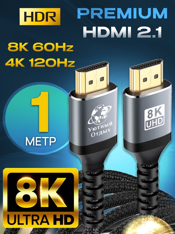 hdmi кабель 1 м 8к 4k 144 и 120 Гц шнур 2.1