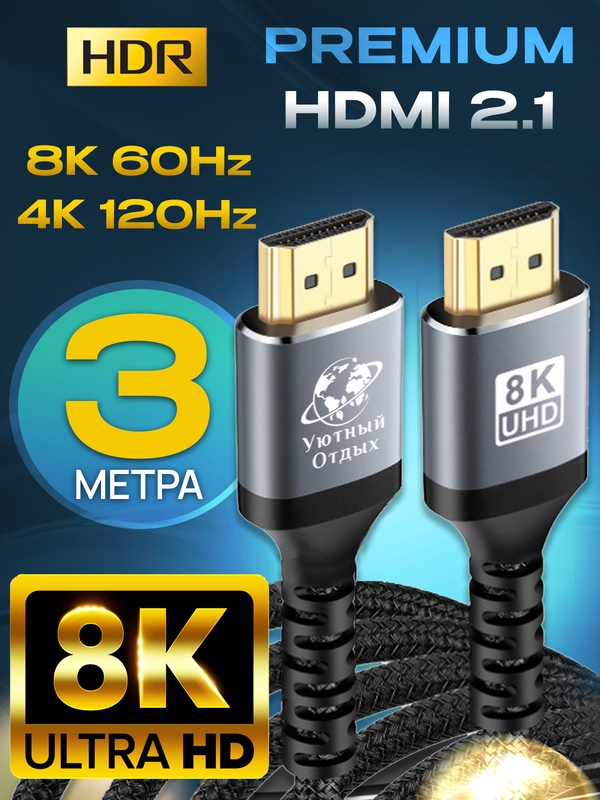 hdmi кабель 3 м 8к 4k 144 и 120 Гц шнур 2.1 (копия)