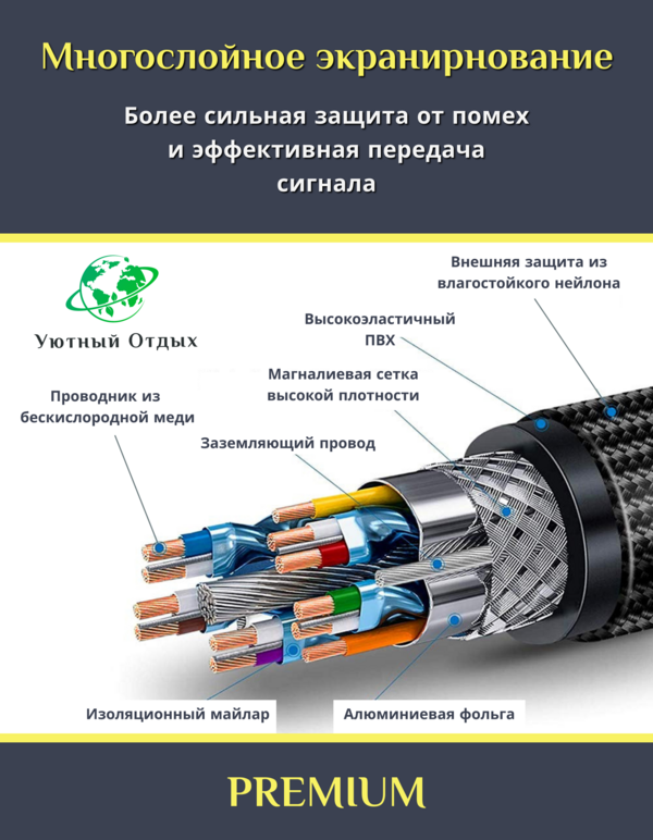 С помощью этого кабеля вы сможете насладиться высококачественным видео и динамическим HDR на вашем экране. Этот кабель имеет высокую скорость передачи данных, что исключает подергивание и задержки в изображении.